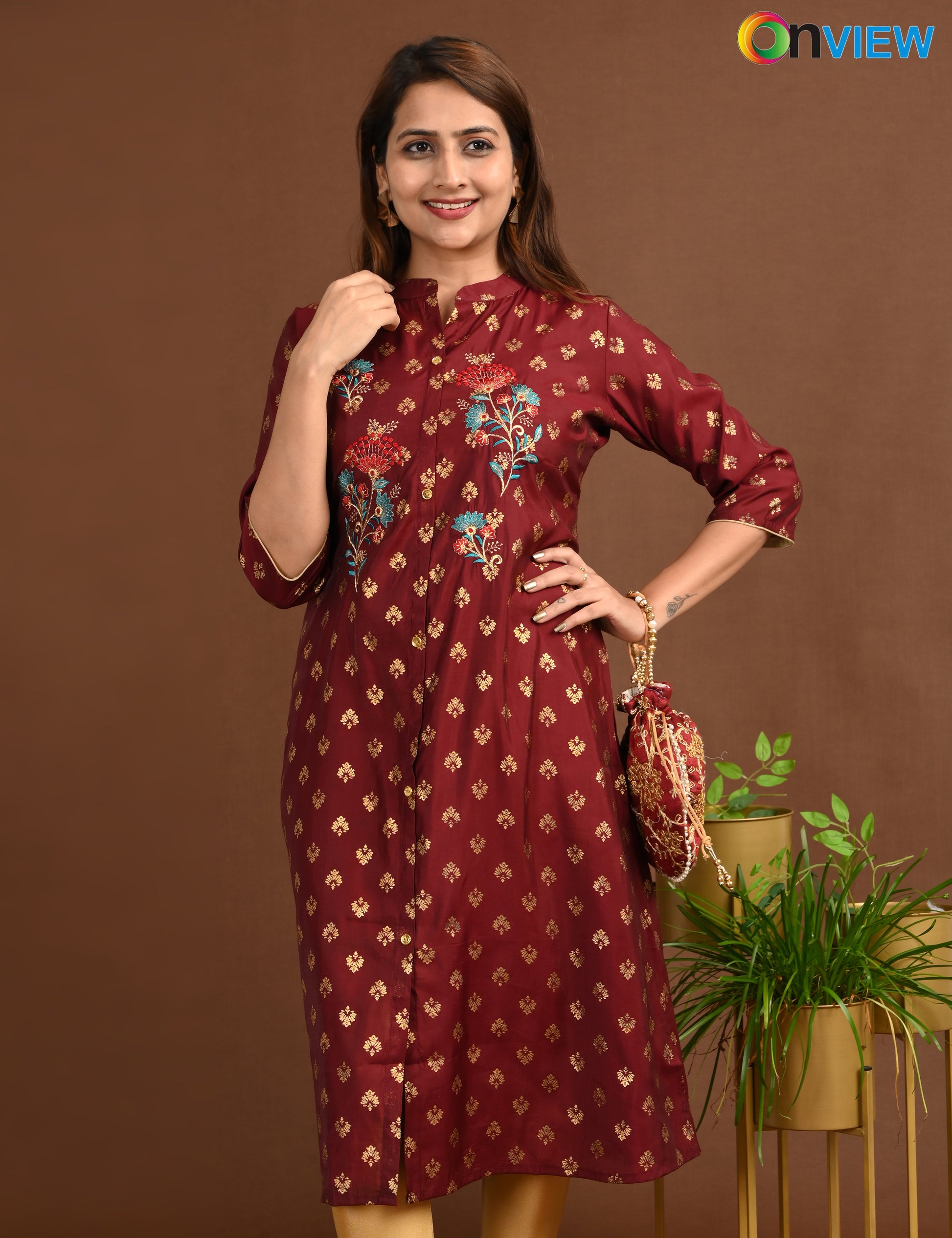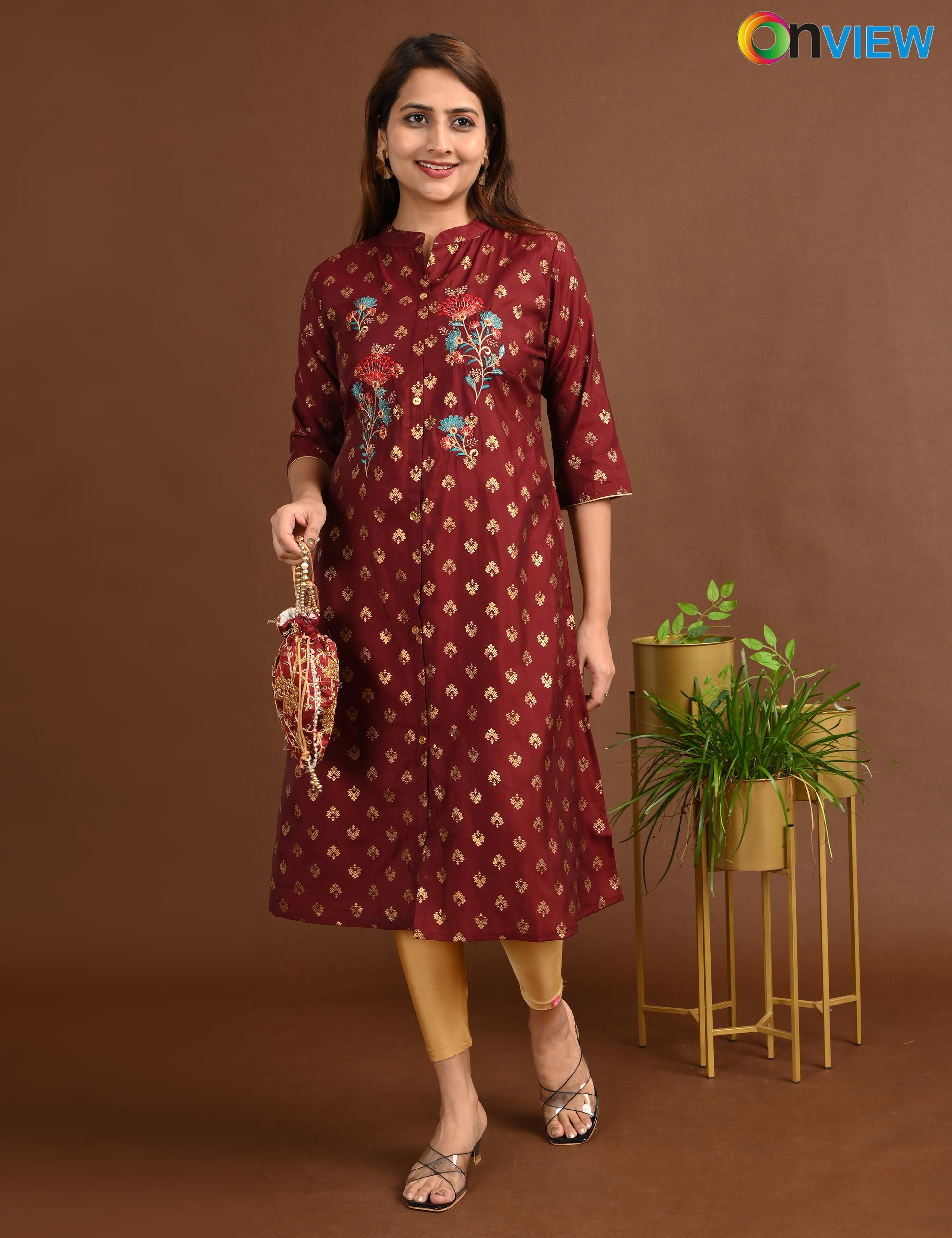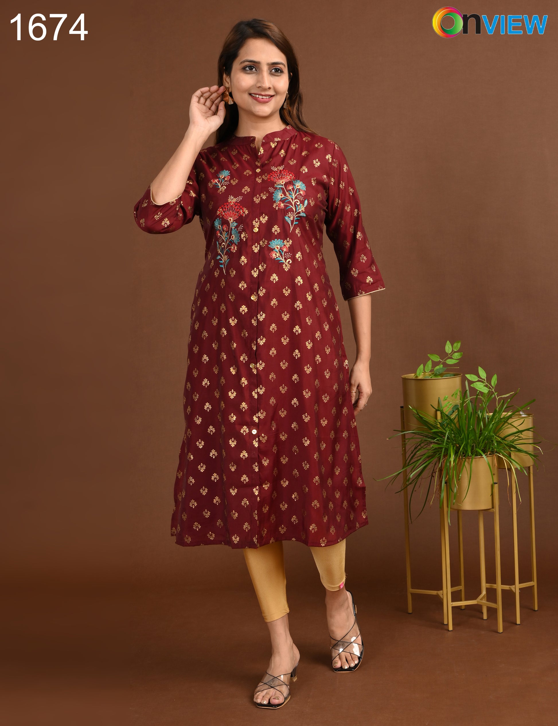 ONVIEW | 1674 | SILK A LINE SIDE OPEN WITH EMBROIDERY