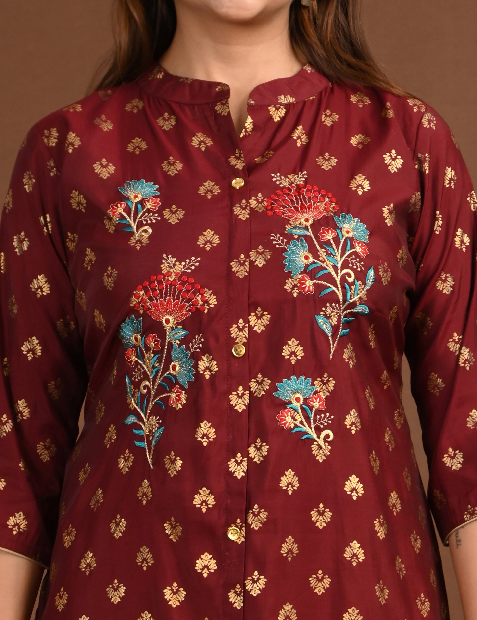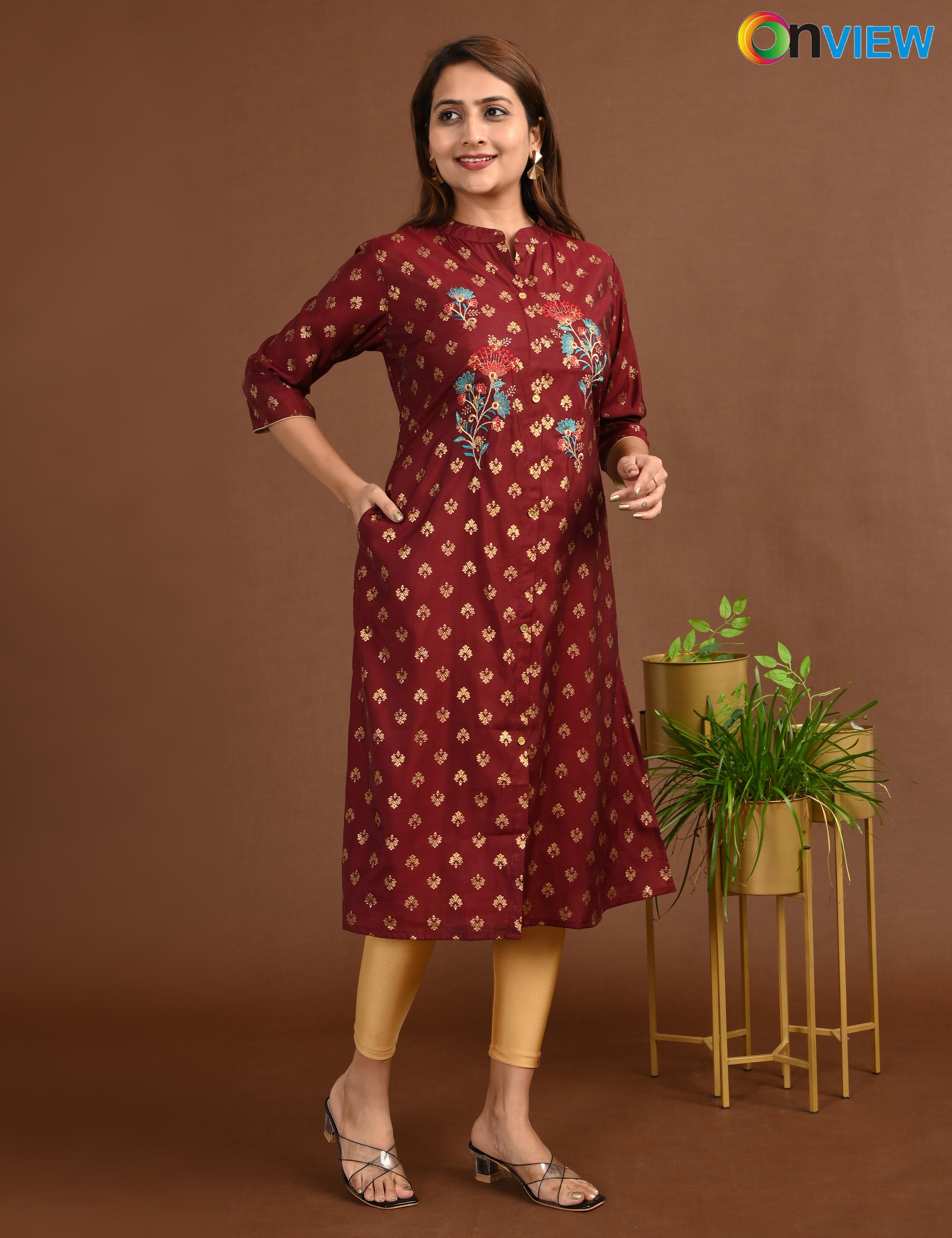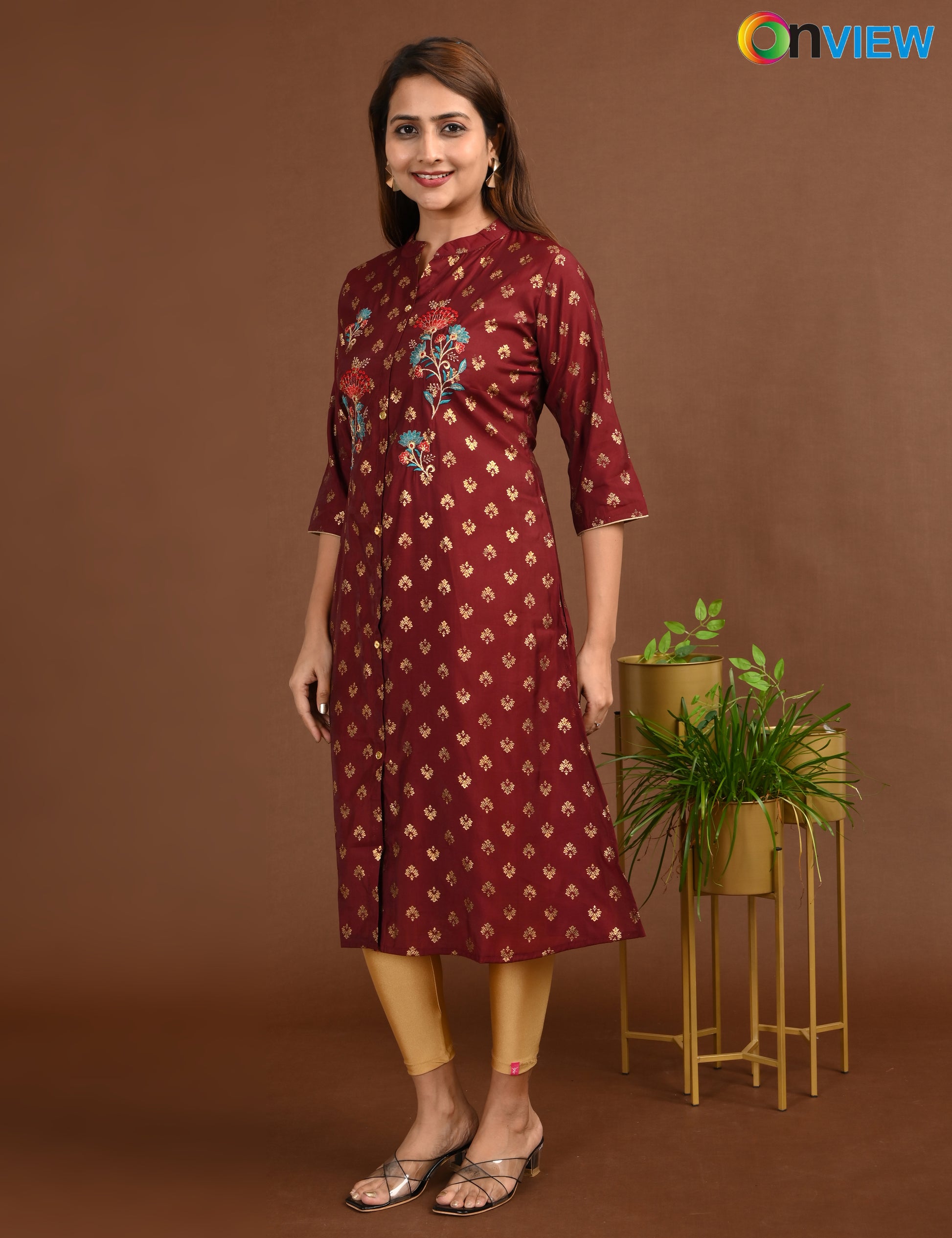ONVIEW | 1674 | SILK A LINE SIDE OPEN WITH EMBROIDERY