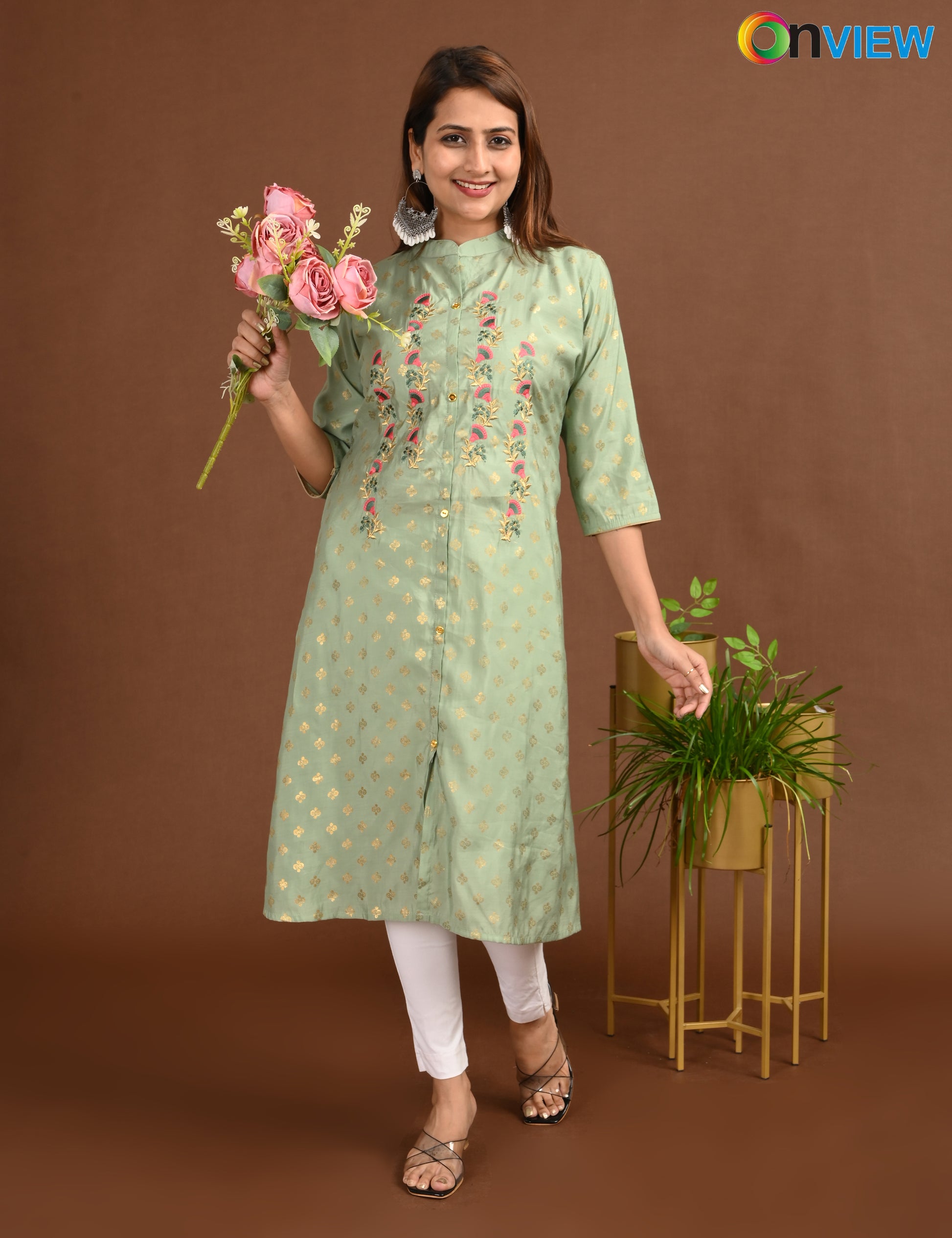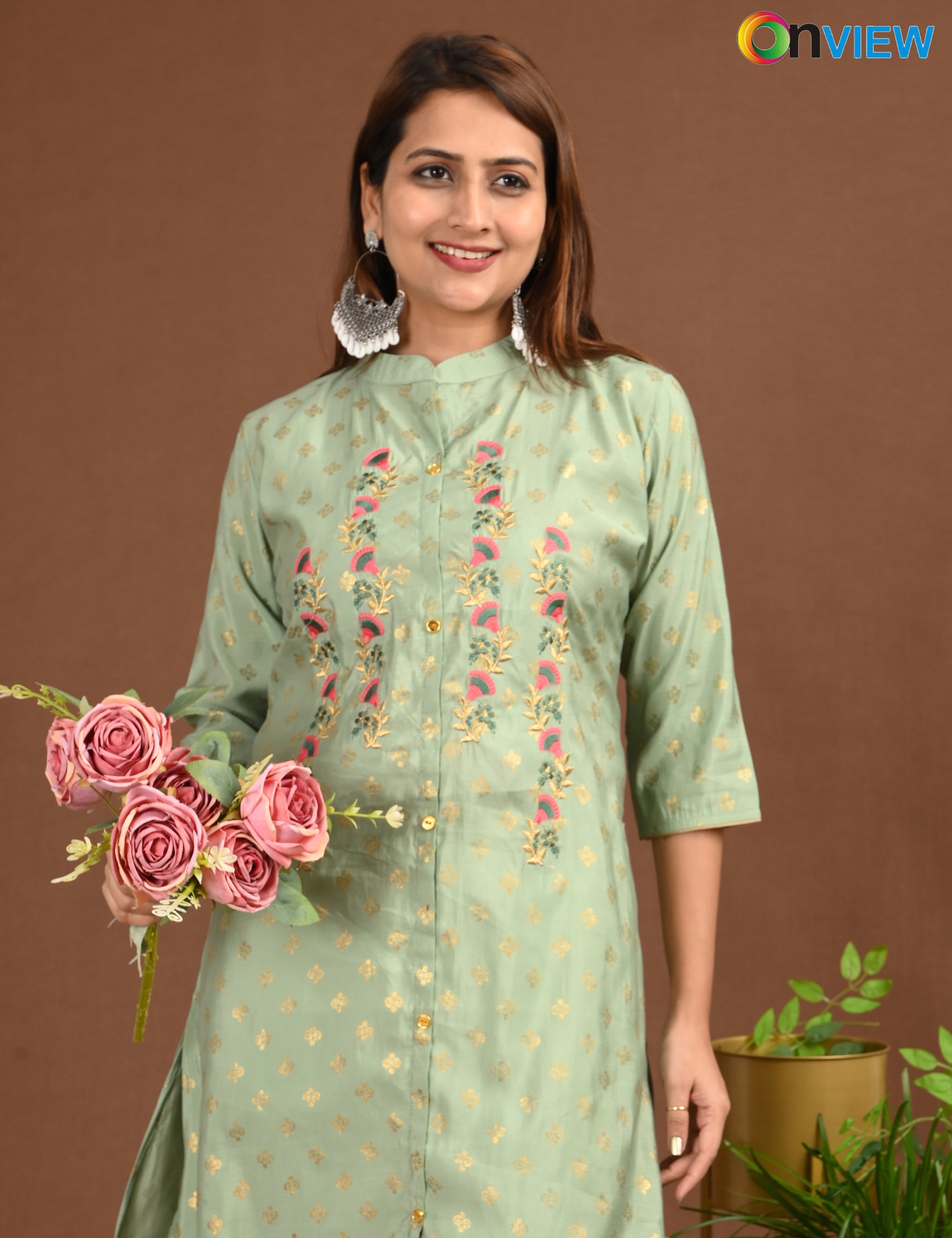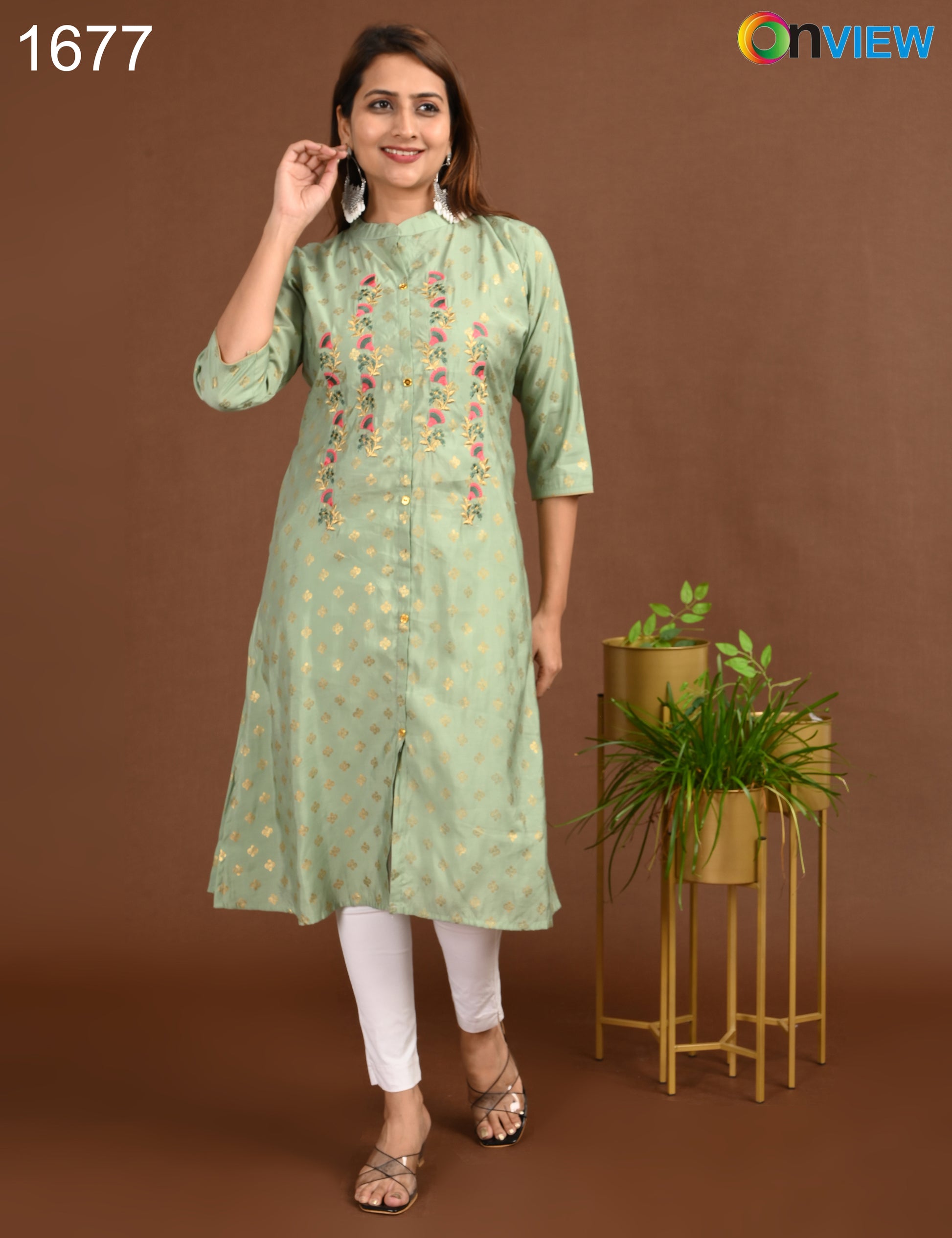 ONVIEW | 1677 | SILK A LINE SIDE OPEN WITH EMBROIDERY