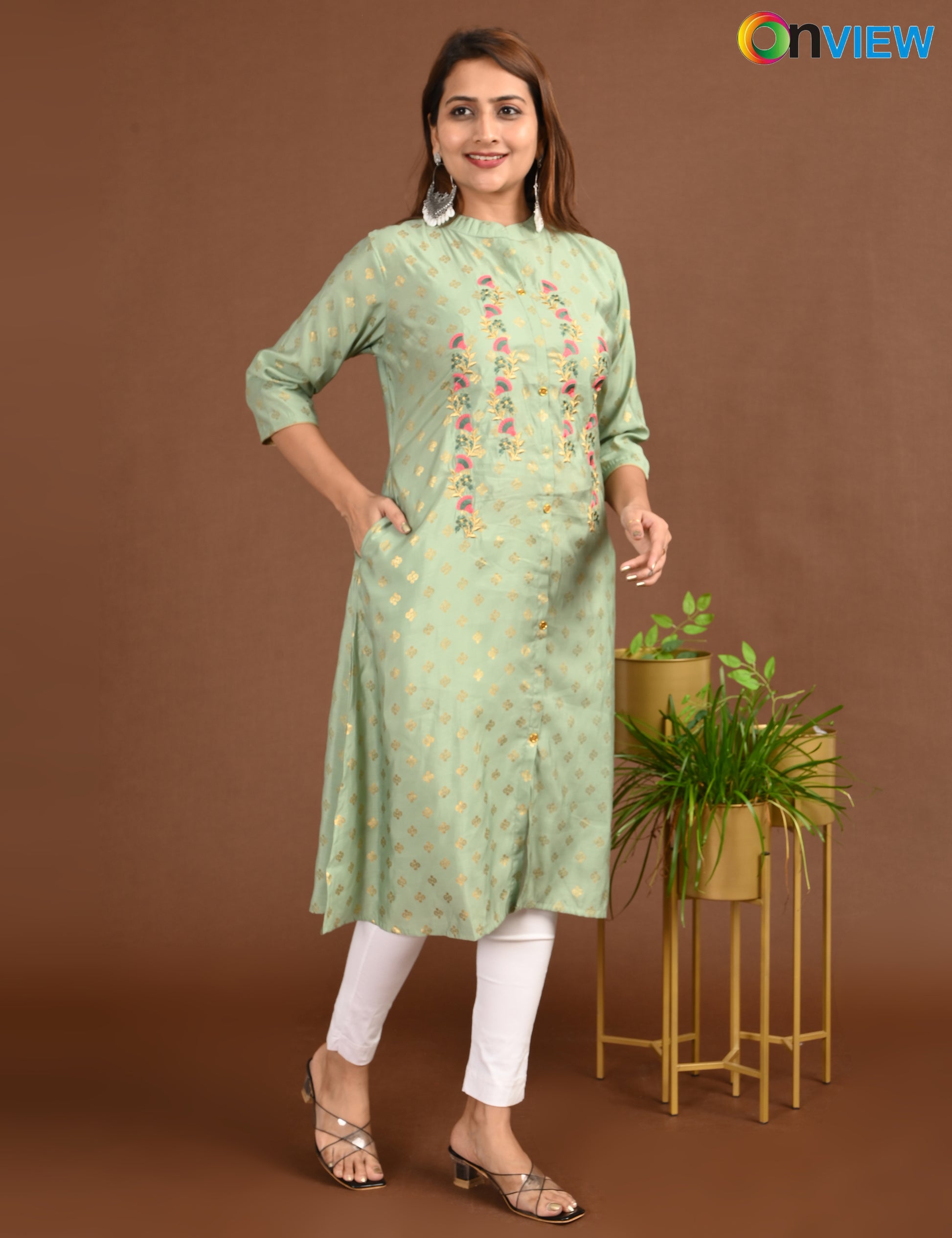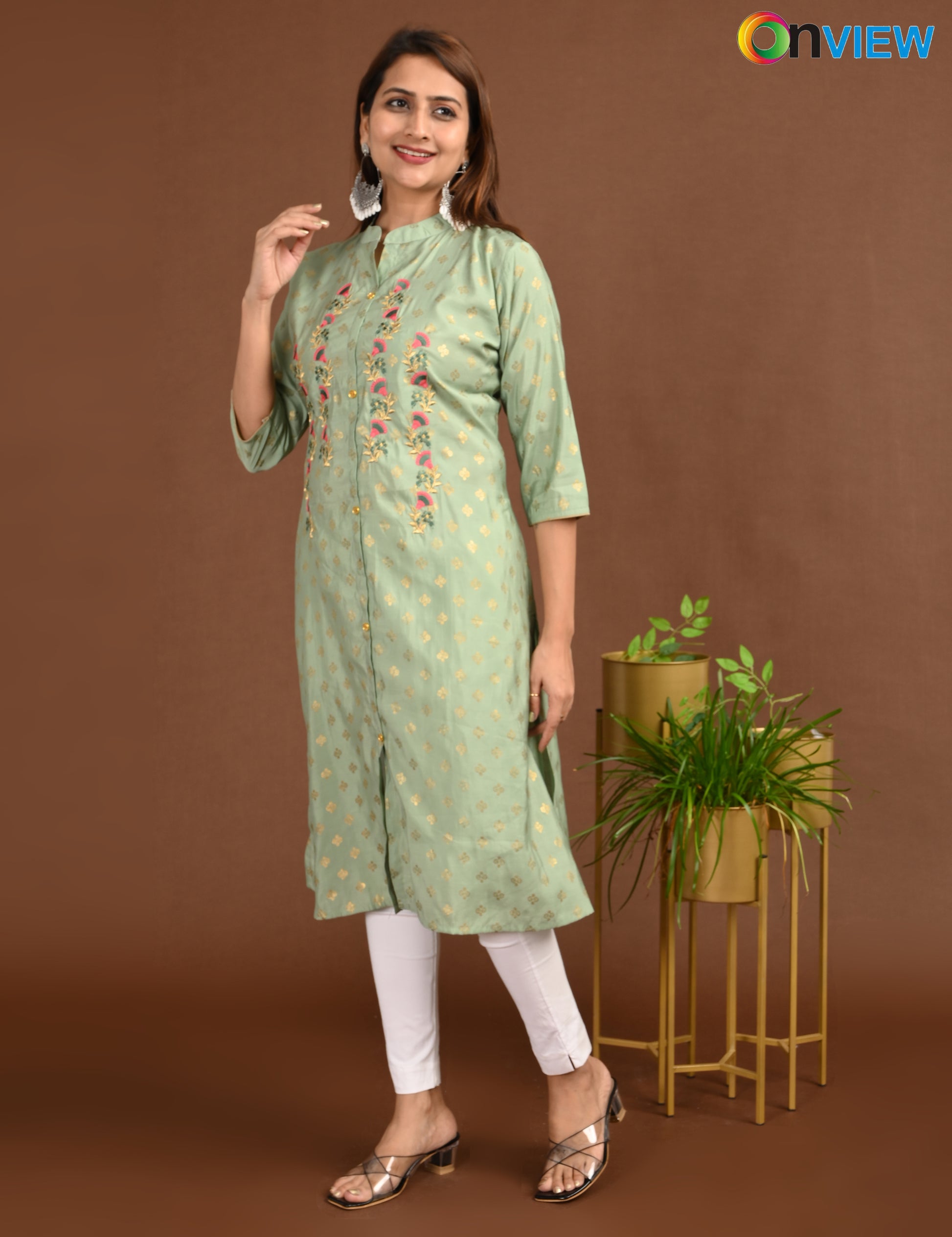 "Designed for modern women, the ONVIEW SILK A LINE SIDE OPEN WITH EMBROIDERY offers timeless elegance and reliable comfort."