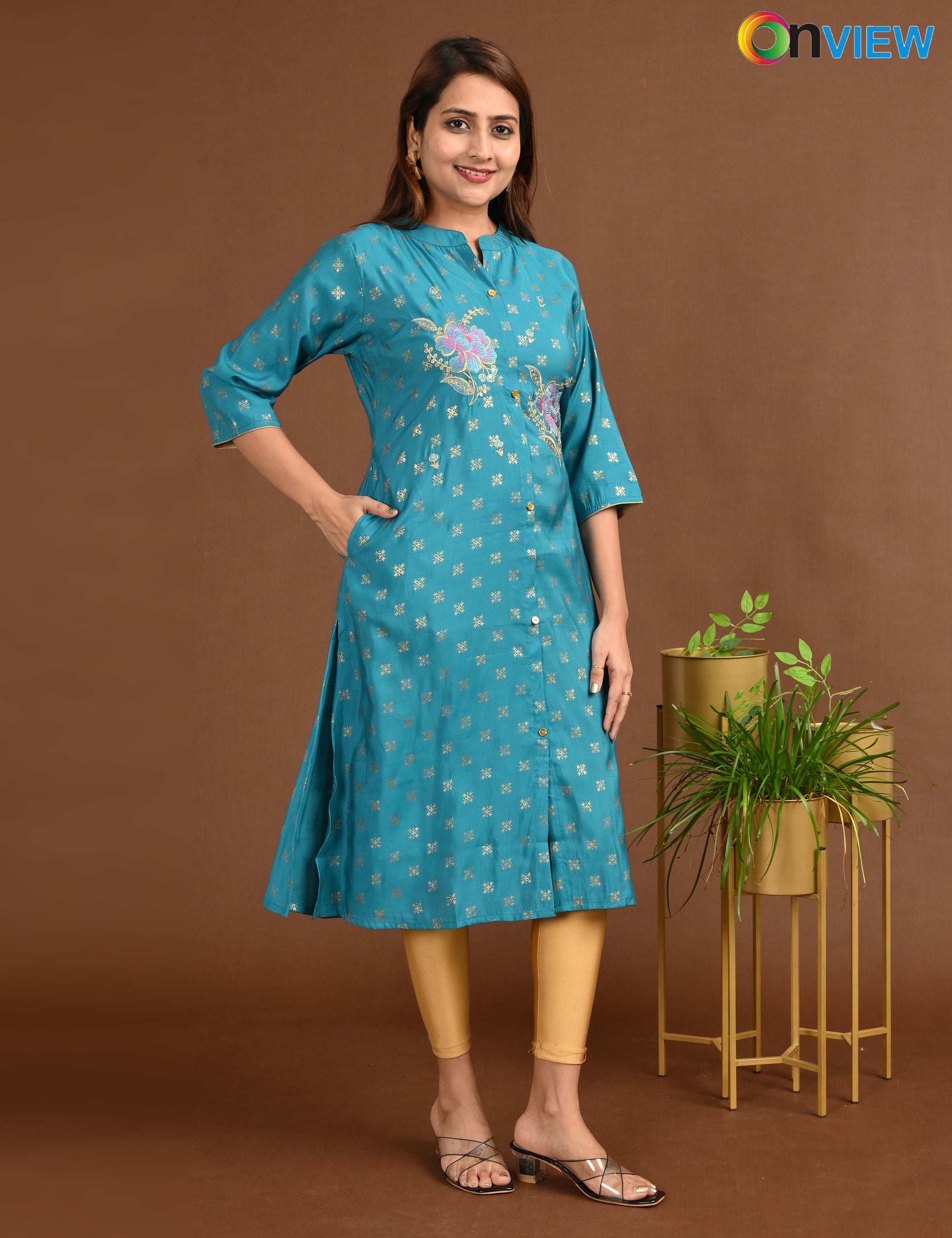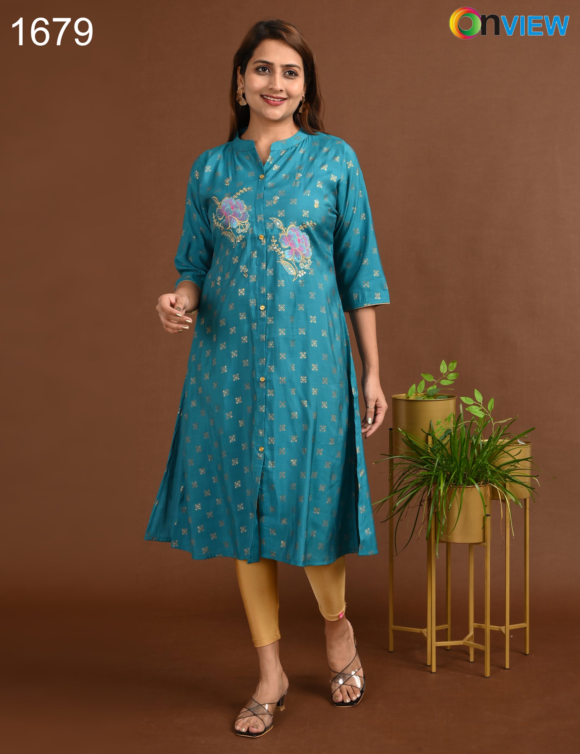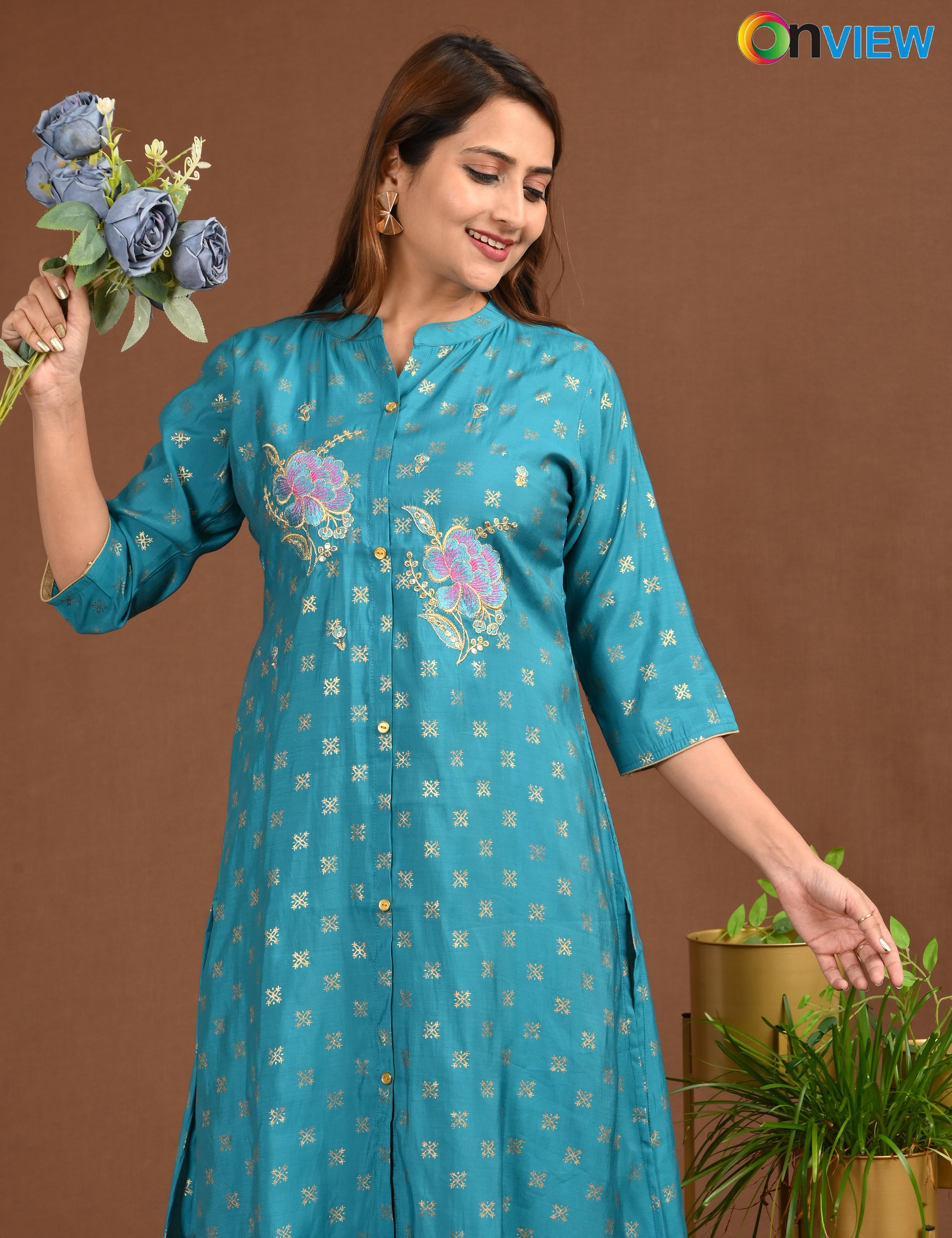 ONVIEW | 1679 | SILK A LINE SIDE OPEN WITH EMBROIDERY