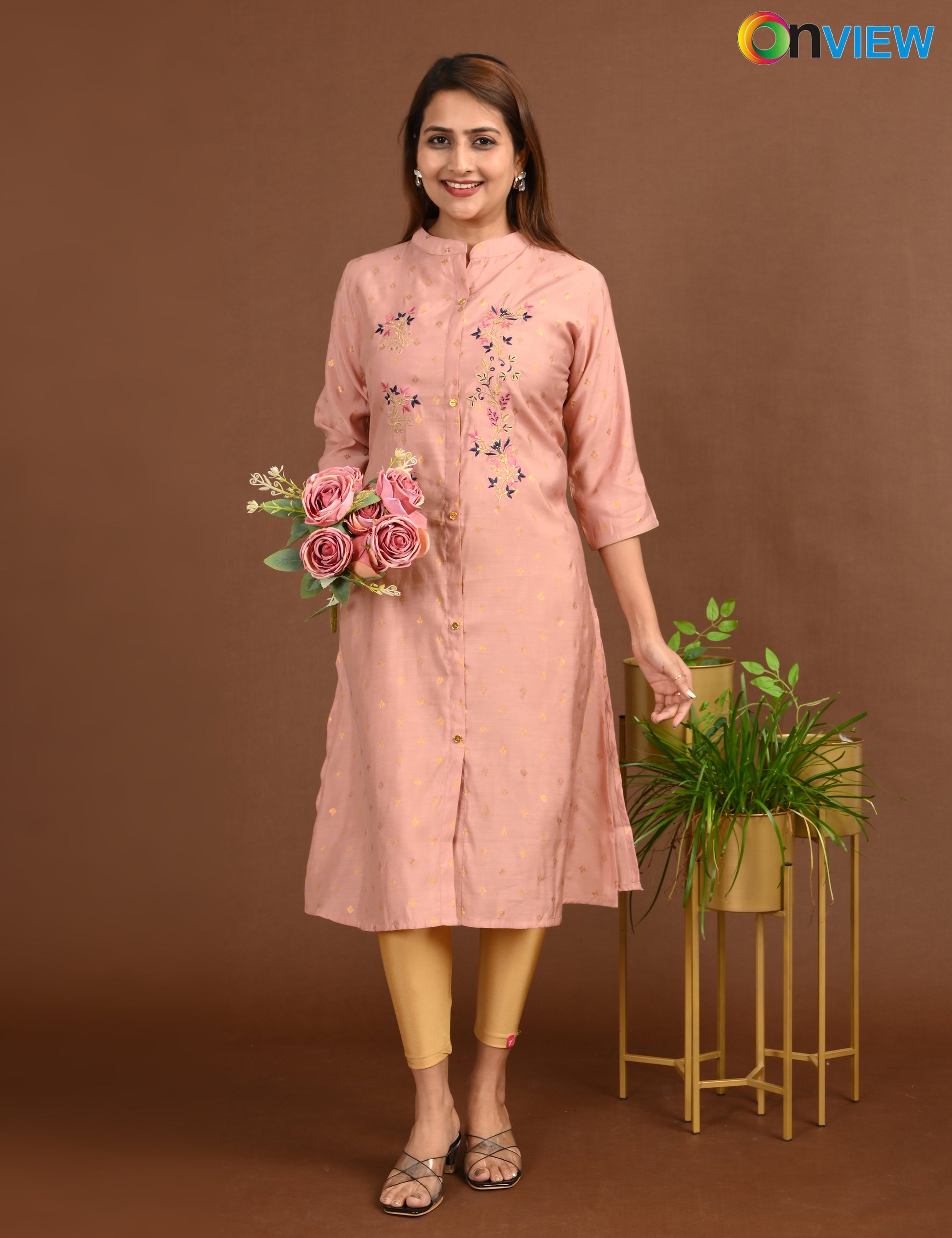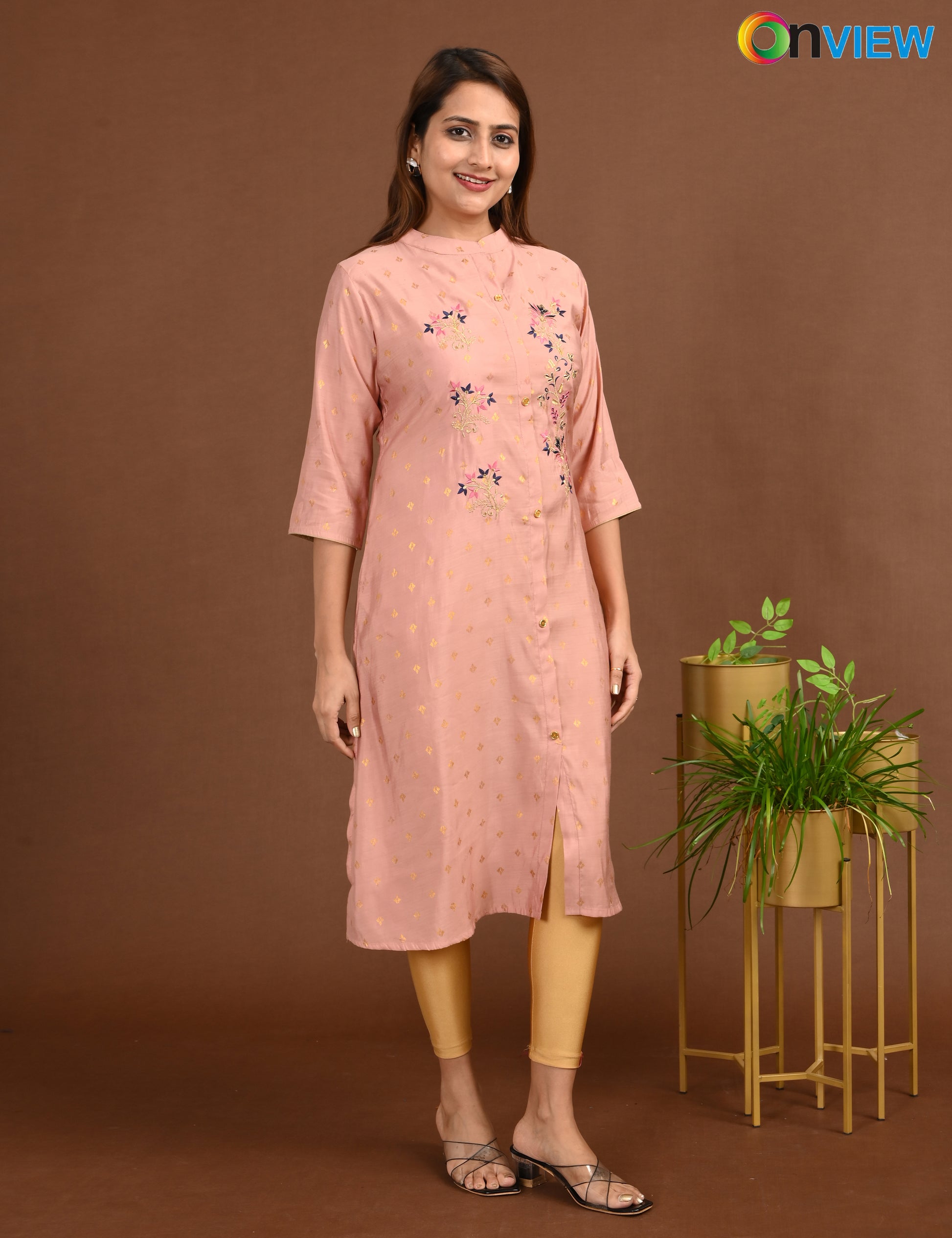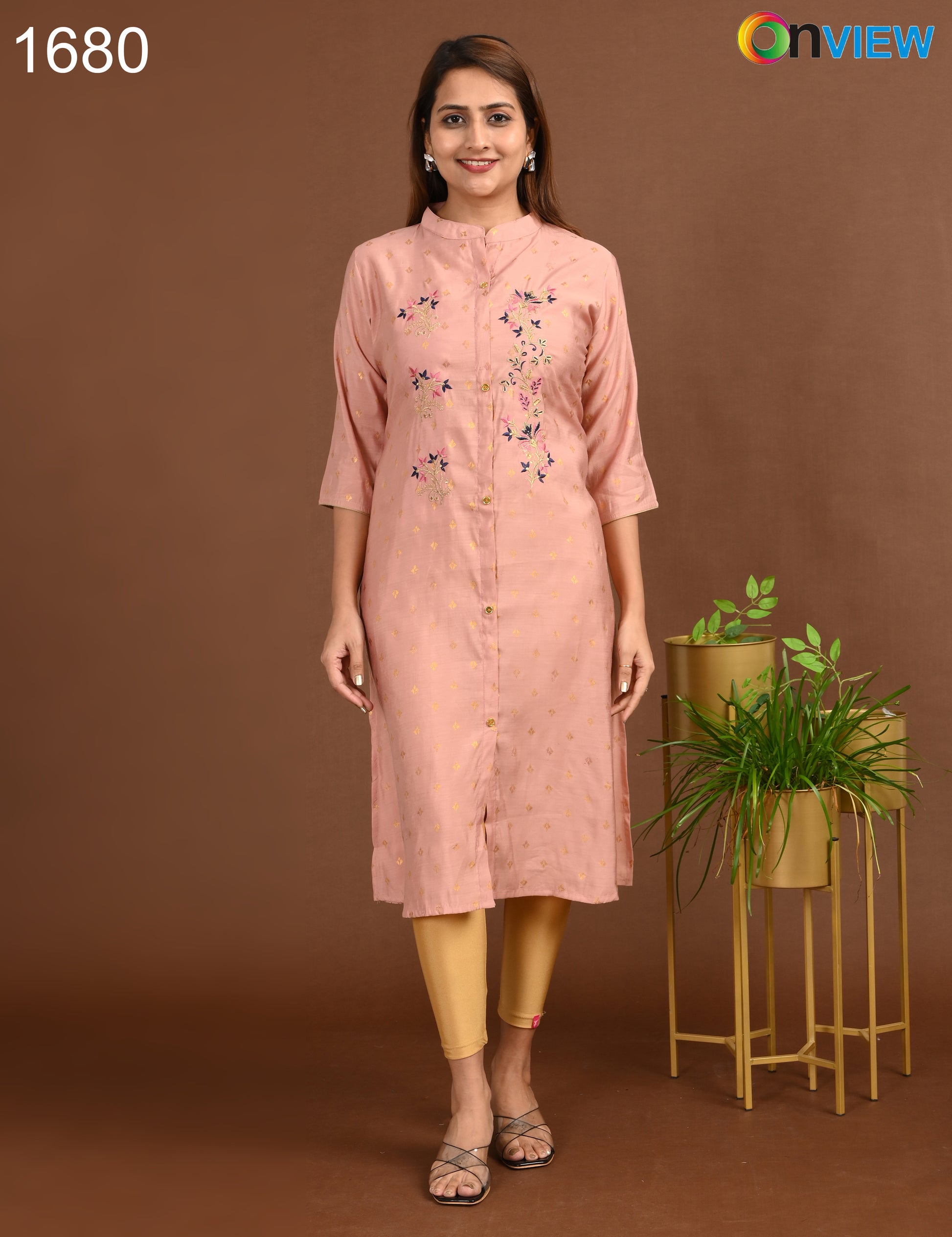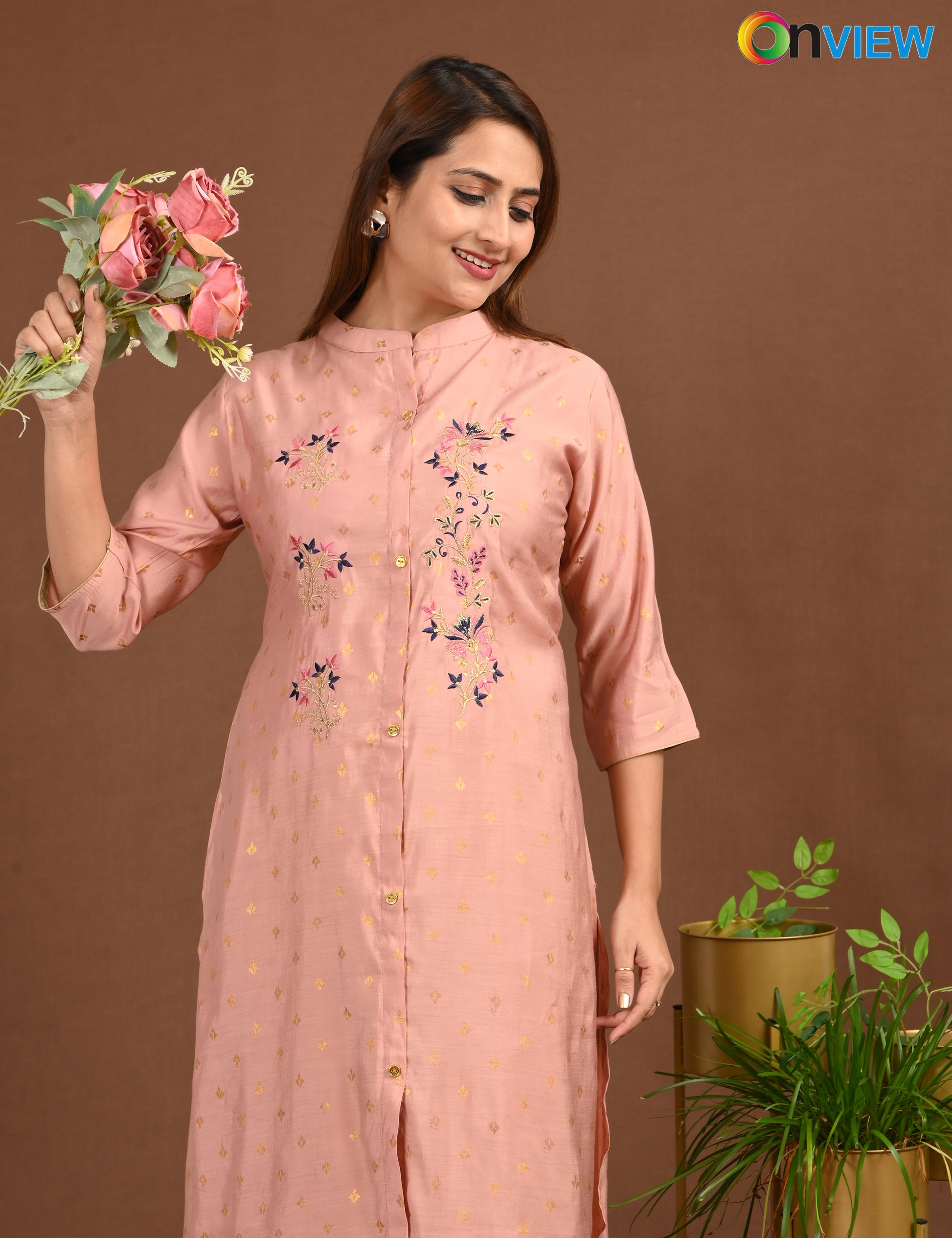ONVIEW | 1680 | SILK A LINE SIDE OPEN WITH EMBROIDERY