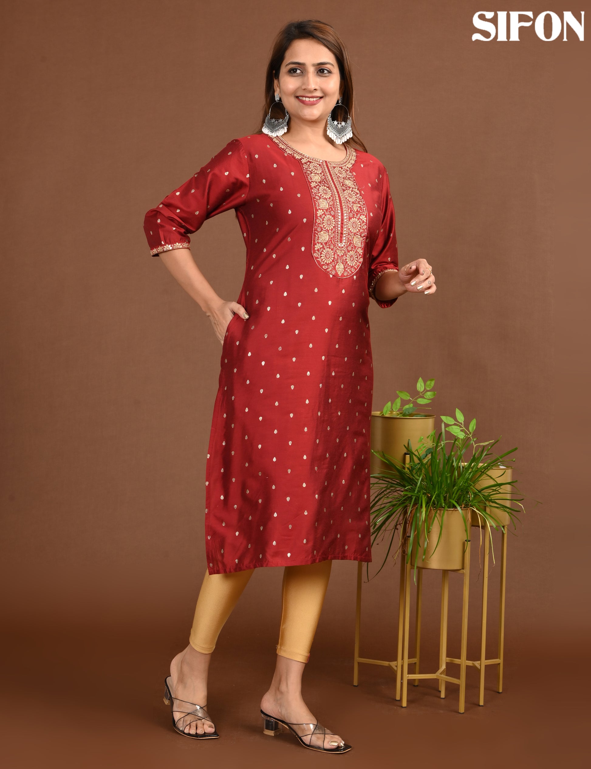 "Designed for modern women, the ONVIEW ROMAN SILK BIG E,BROIDERY offers timeless elegance and reliable comfort."