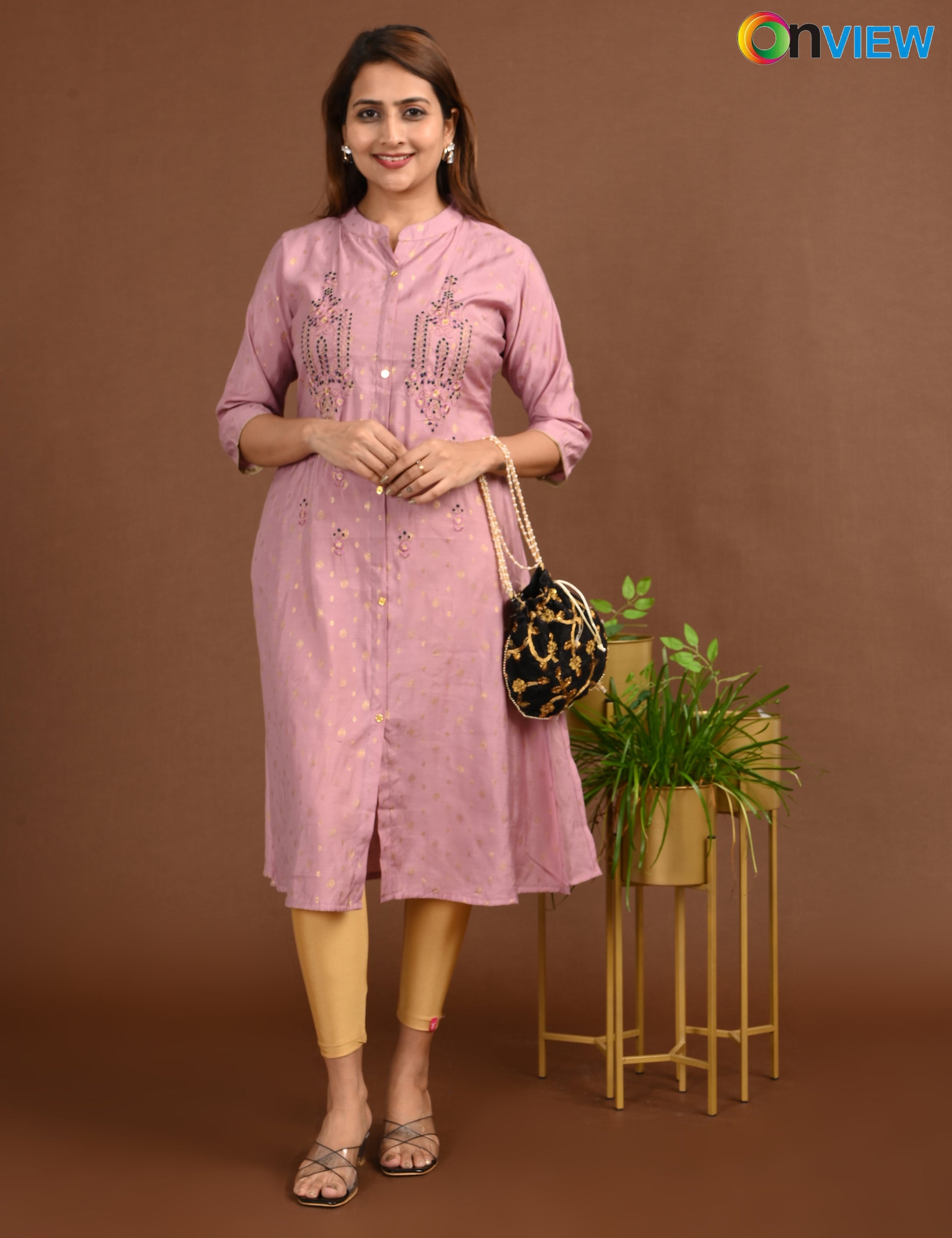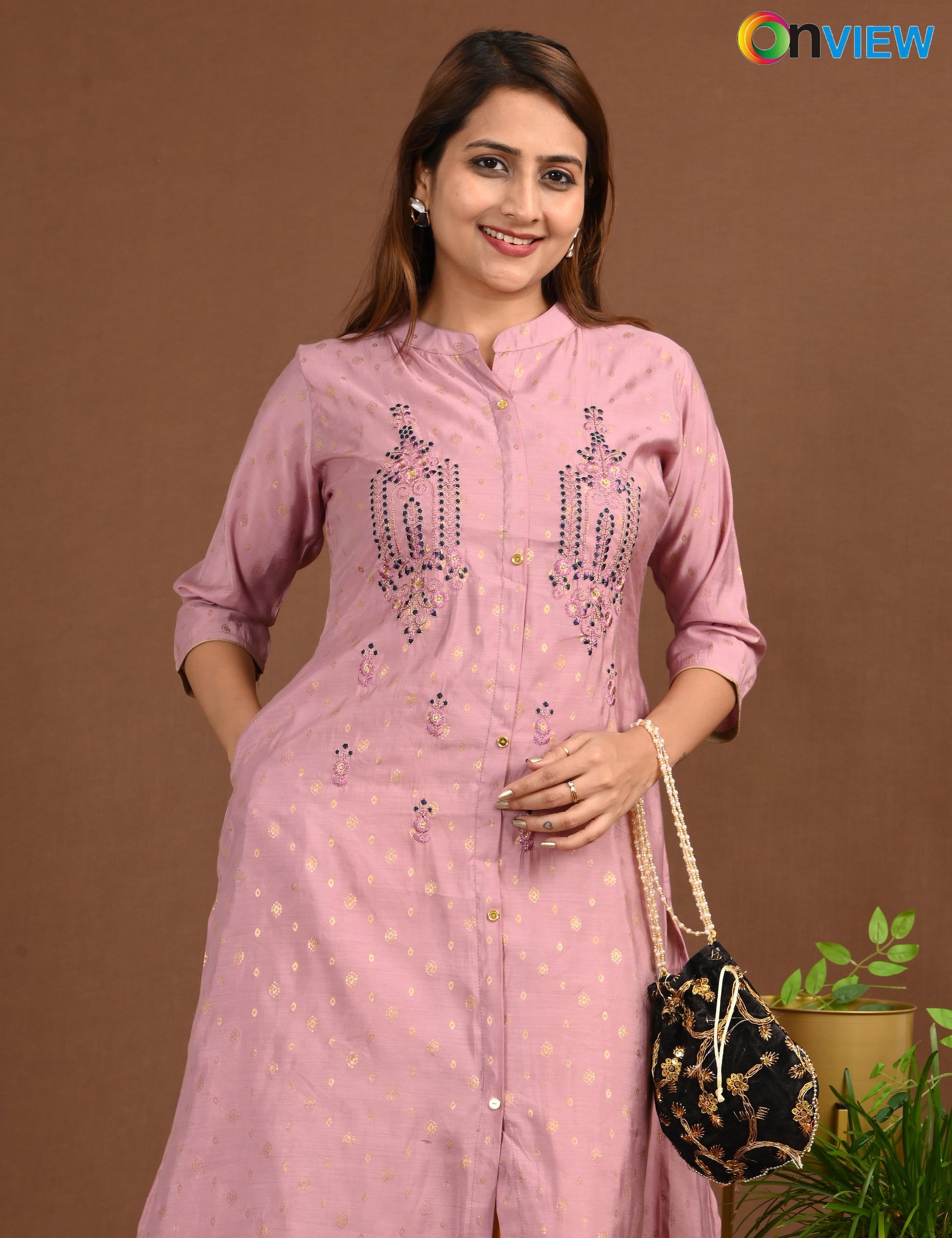 ONVIEW | 1757 | SILK A LINE SIDE OPEN WITH EMBROIDERY